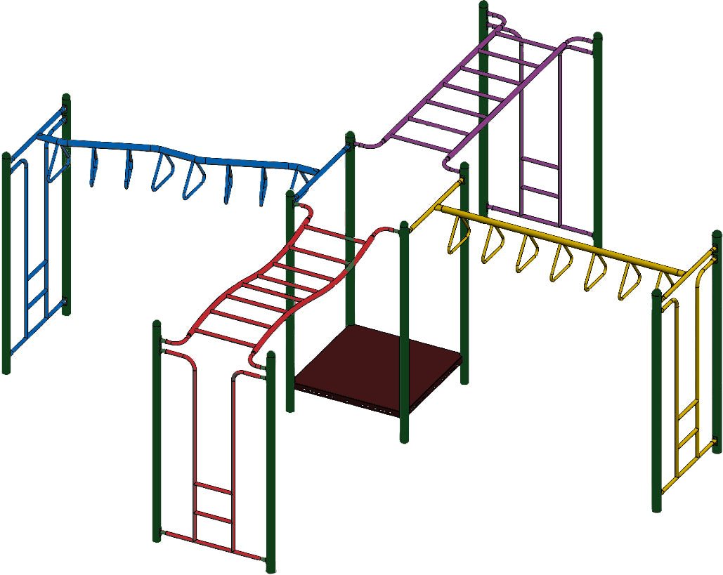 The Jungle Junction is an exciting fitness-style playground packed with monkey bars, overhead ladders, and climbing challenges. Its colorful interconnected design promotes strength, coordination, and active play for kids who love to climb and swing.